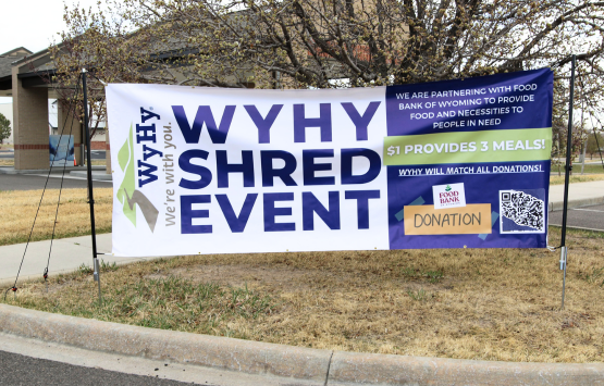 Donate: Shredding is free, but donations to the Food Bank of Wyoming are encouraged—every dollar donated will be matched by WyHy!